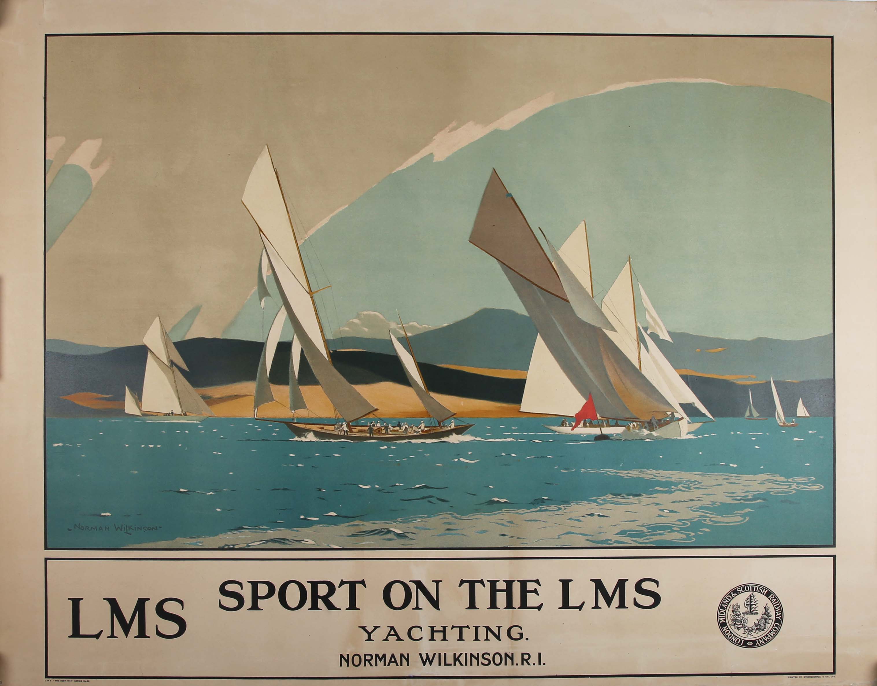 Norman Wilkinson (British 1878-1971) - ‘Sport on the LMS: Yachting’, original LMS Railways poster, c.1924, printed by McCorquodale, 101cm x 125cm, unframed.