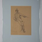 James Albert Buchanan Jay (British 1838-1888) - Three military studies of officers in uniform, pencil, two heightened with white and on grey paper, one indistinctly inscribed and dated, the largest 28cm x 19cm, together with two further equestrian studies by the same hand, pen and ink, both signed and dated, the larger 17cm x 25.5cm, all unframed, and a sketch book containing thirteen equestrian studies (5).