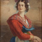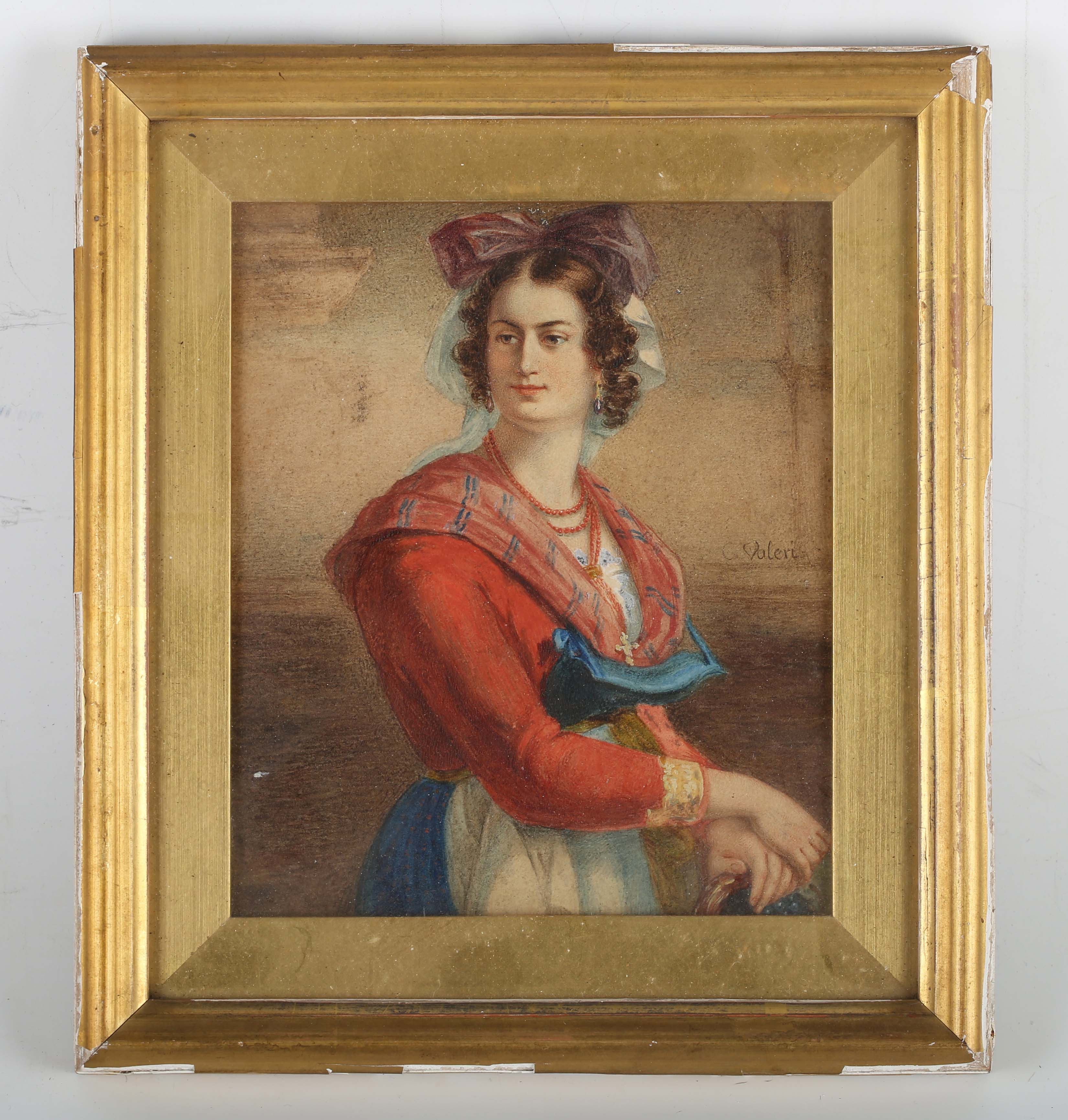 C. Valeri (19th century) - Portrait of a lady, watercolour, signed middle right, 23cm x 10.5cm, within a gilt frame.