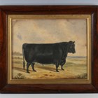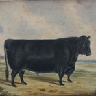 English Provincial School (19th century) - Prize bull in a landscape, watercolour, 29cm x 36.5cm, within a rosewood veneered frame.
