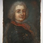 Continental School (19th century) - Portrait of a gentleman in 18th century dress, wearing armour, pastel, 51cm x 40.5cm, unframed.