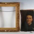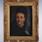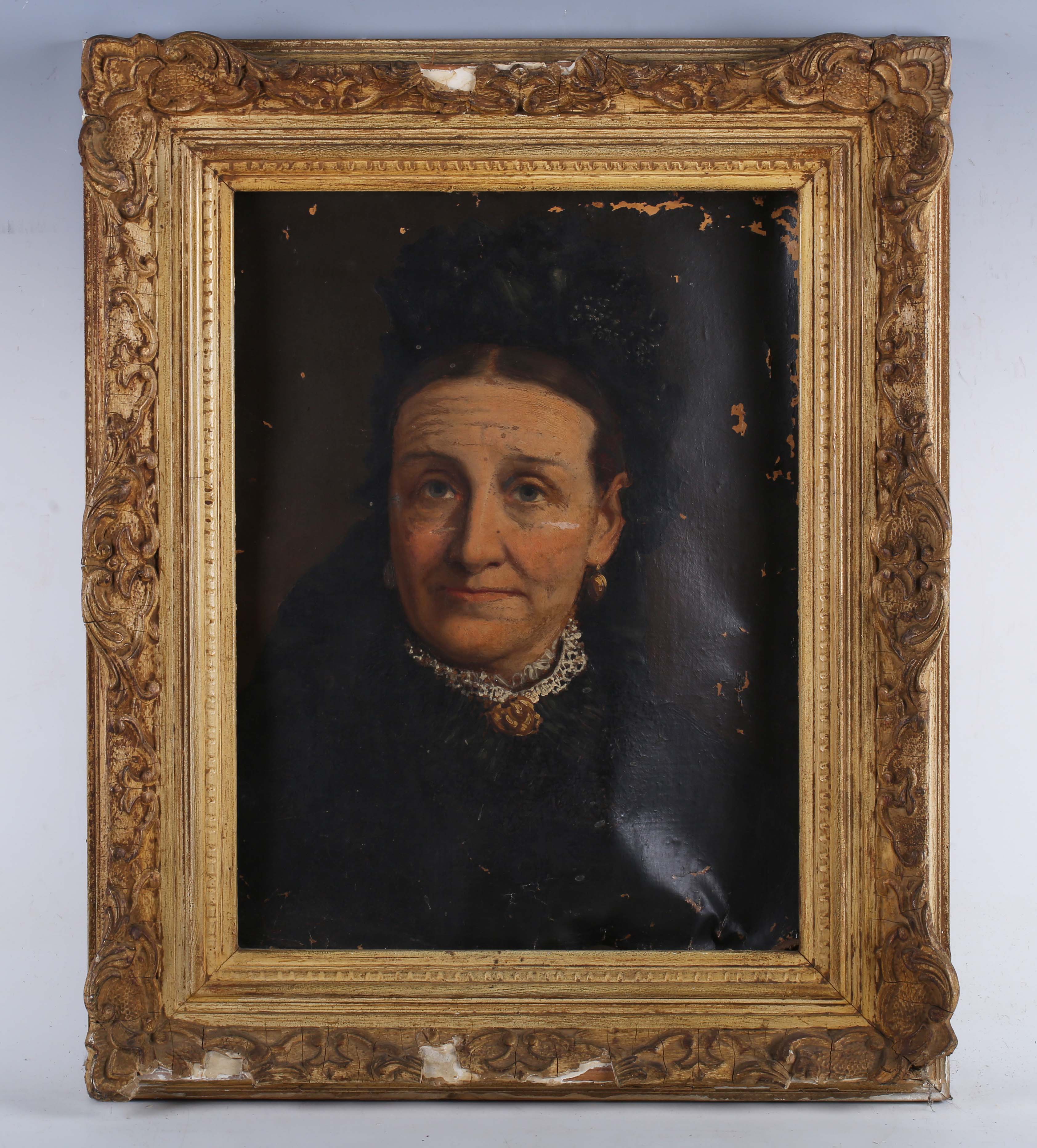 British School (19th century) - Head and shoulders portrait of an elderly lady wearing black, oil on canvas, 40cm x 32.5cm, within a swept gilt composition frame.