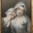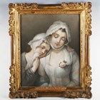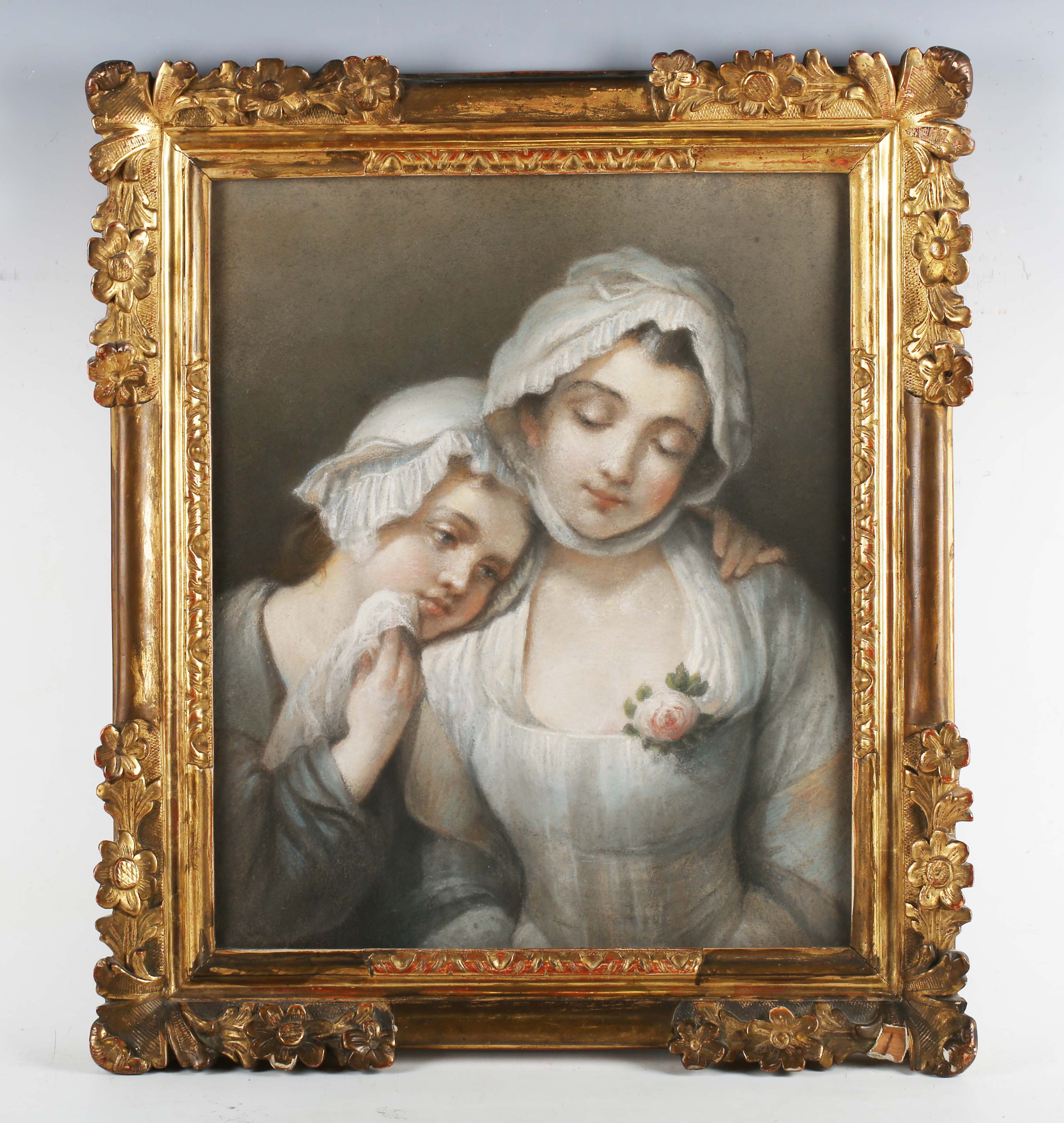 After Jean-Baptiste Greuze - Mother and child, pastel, 44cm x 37cm, within a carved giltwood frame.