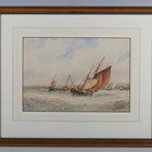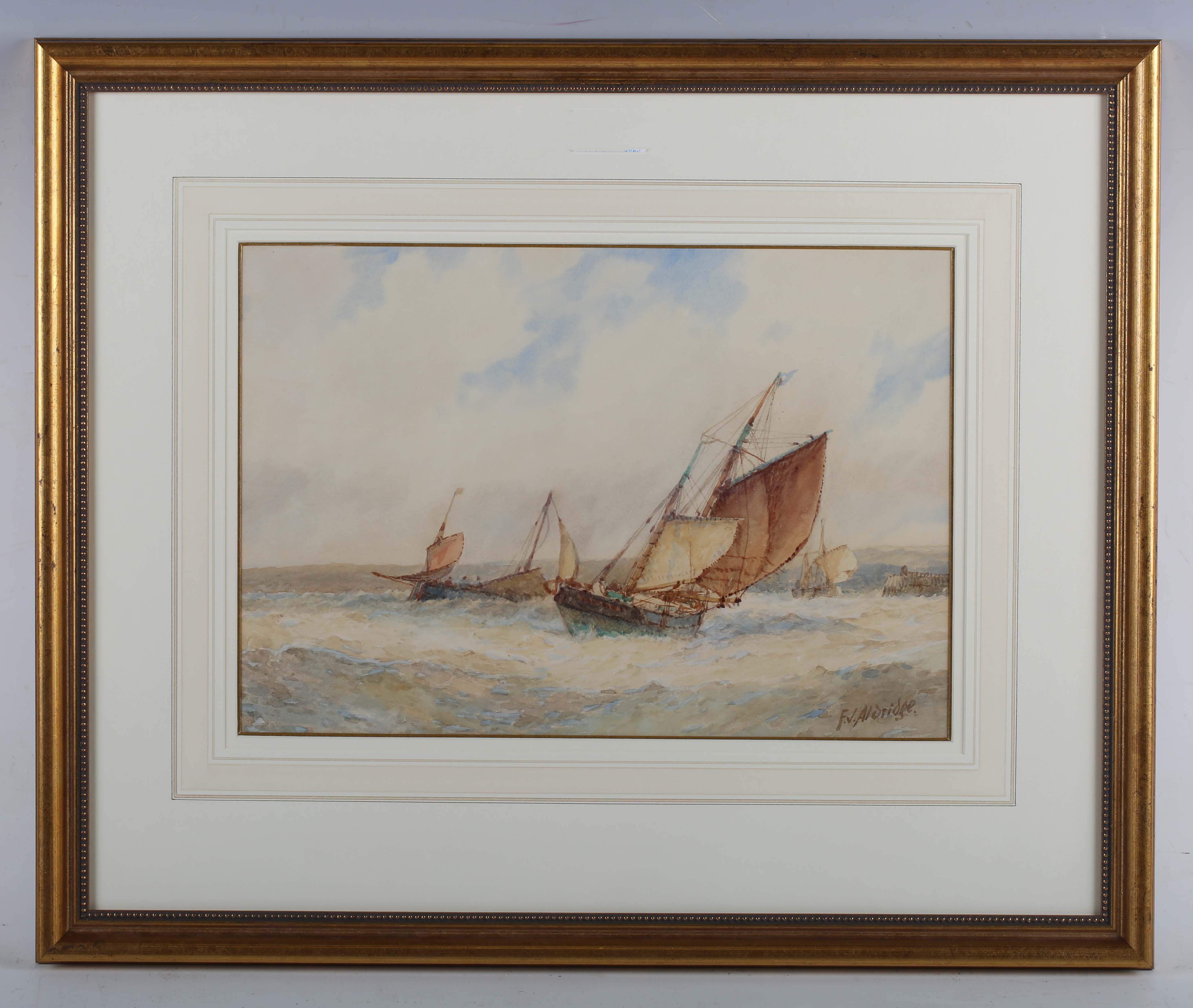 Frederick James Aldridge (British 1850-1933) - Fishing boats off the coast, watercolour, signed lower right, 25cm x 36.5cm, within a gilt frame.
