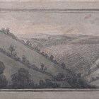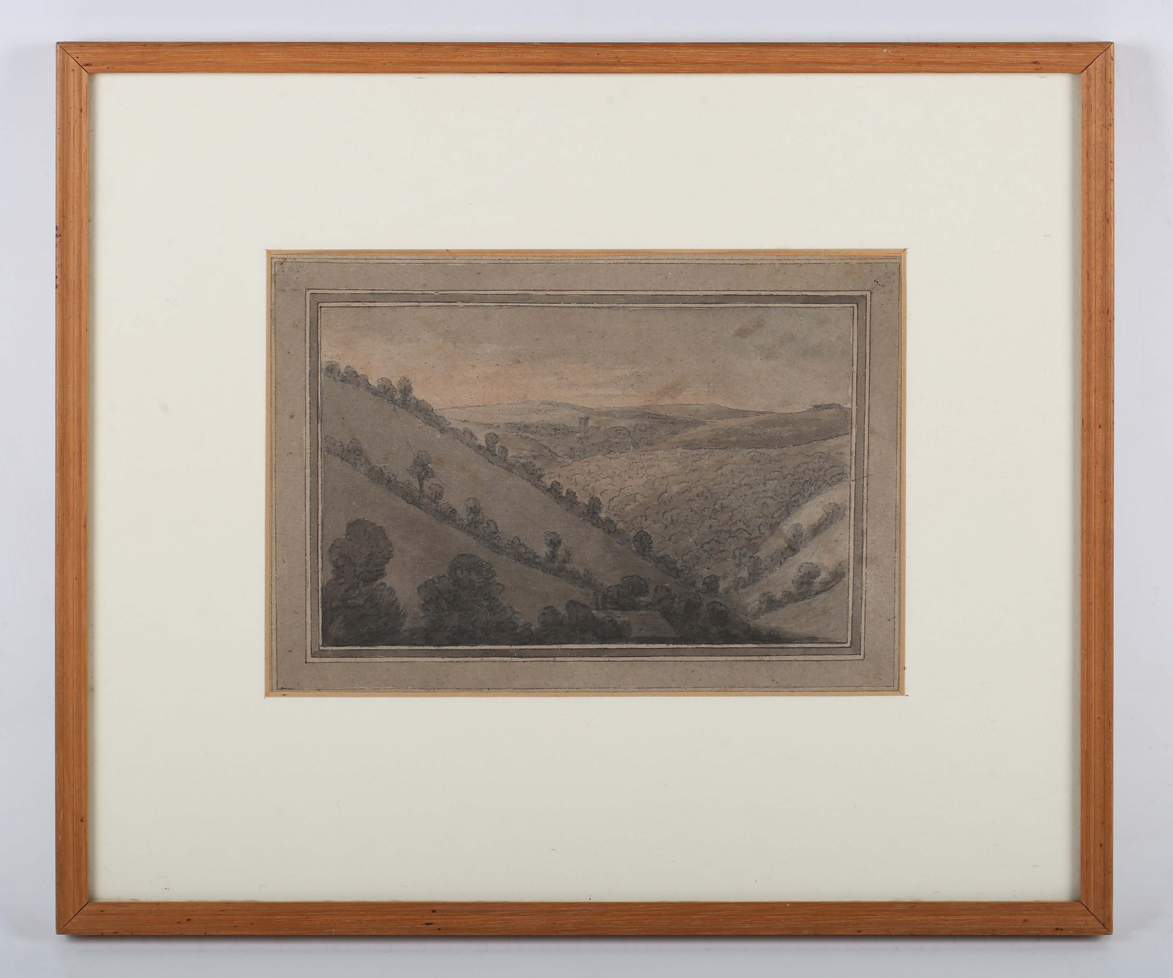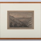 Attributed to George Barret Senior (British 1732-1784) - Mountainous landscape, pen, ink and grey wash, inscribed on old labels verso, 18cm x 25cm, within a wood frame.