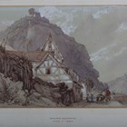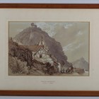 William Delamotte (British 1775-1863) - Continental landscape with houses and figures on a quayside, watercolour, signed lower left, indistinctly inscribed upper right, 24cm x 35.5cm, within an oak frame.