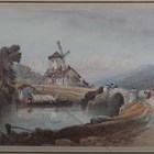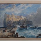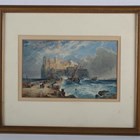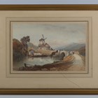 Richard Principal Leitch (British c.1800-c.1881) - The Castle of Ischia from the Mole, Italy, watercolour, signed and dated 1881 lower left, 15cm x 24.5cm, together with a further watercolour river scene, signed 'D. Leitch', 24cm x 35.5cm, both within gilt frames (2).
