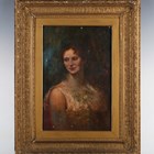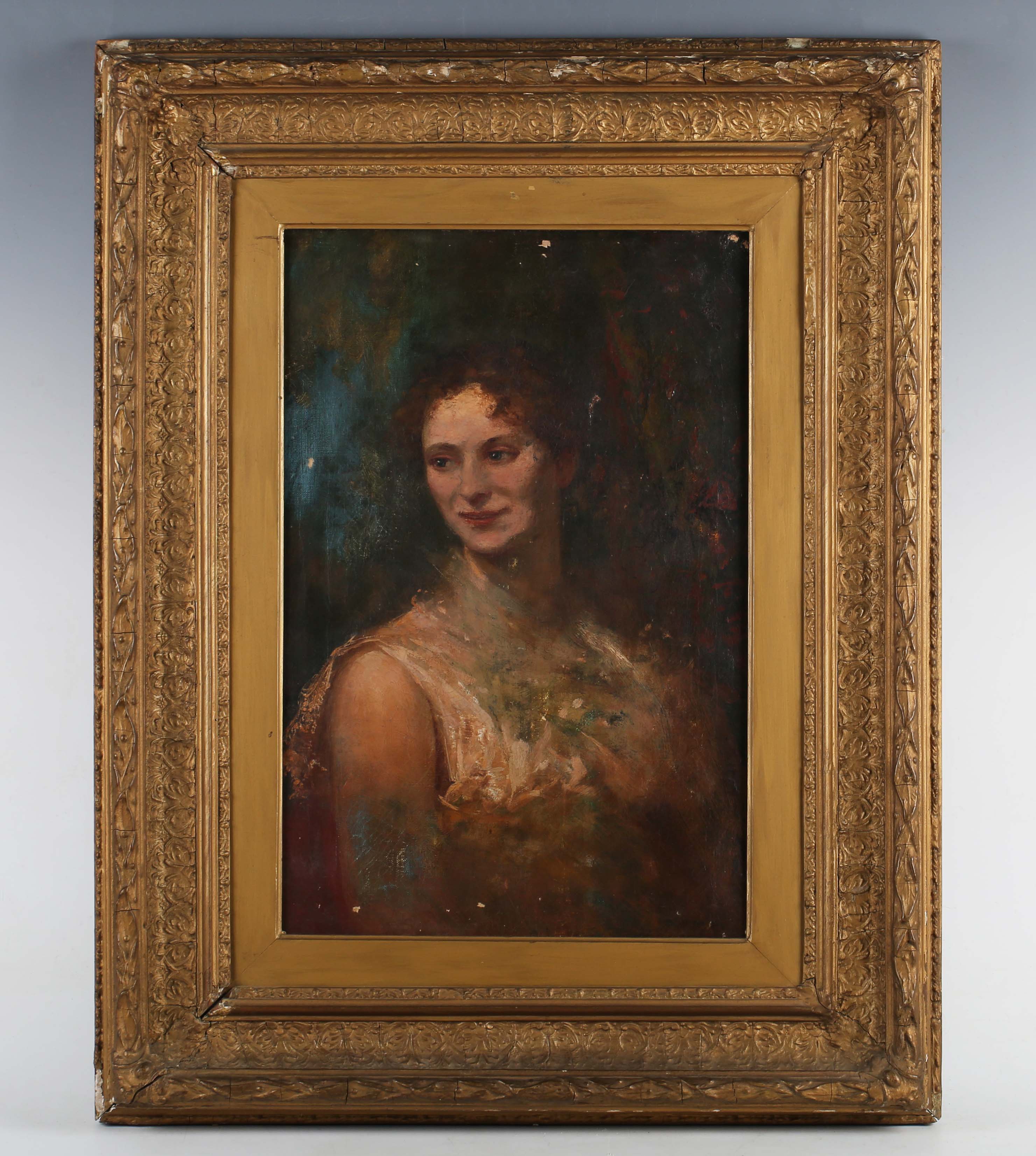 Attributed to Charles Sims (British 1873-1928) - Portrait of a young lady, oil on canvas, signed lower right, 46cm x 31cm, within a gilt composition frame.