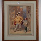 John Cawse (British 1779-1862) - Scenes with the Shakespeare character Falstaff, a group of three watercolours, two signed verso, two 18cm x 26cm, one 26.5cm x 20.5cm, within oak frames (3).