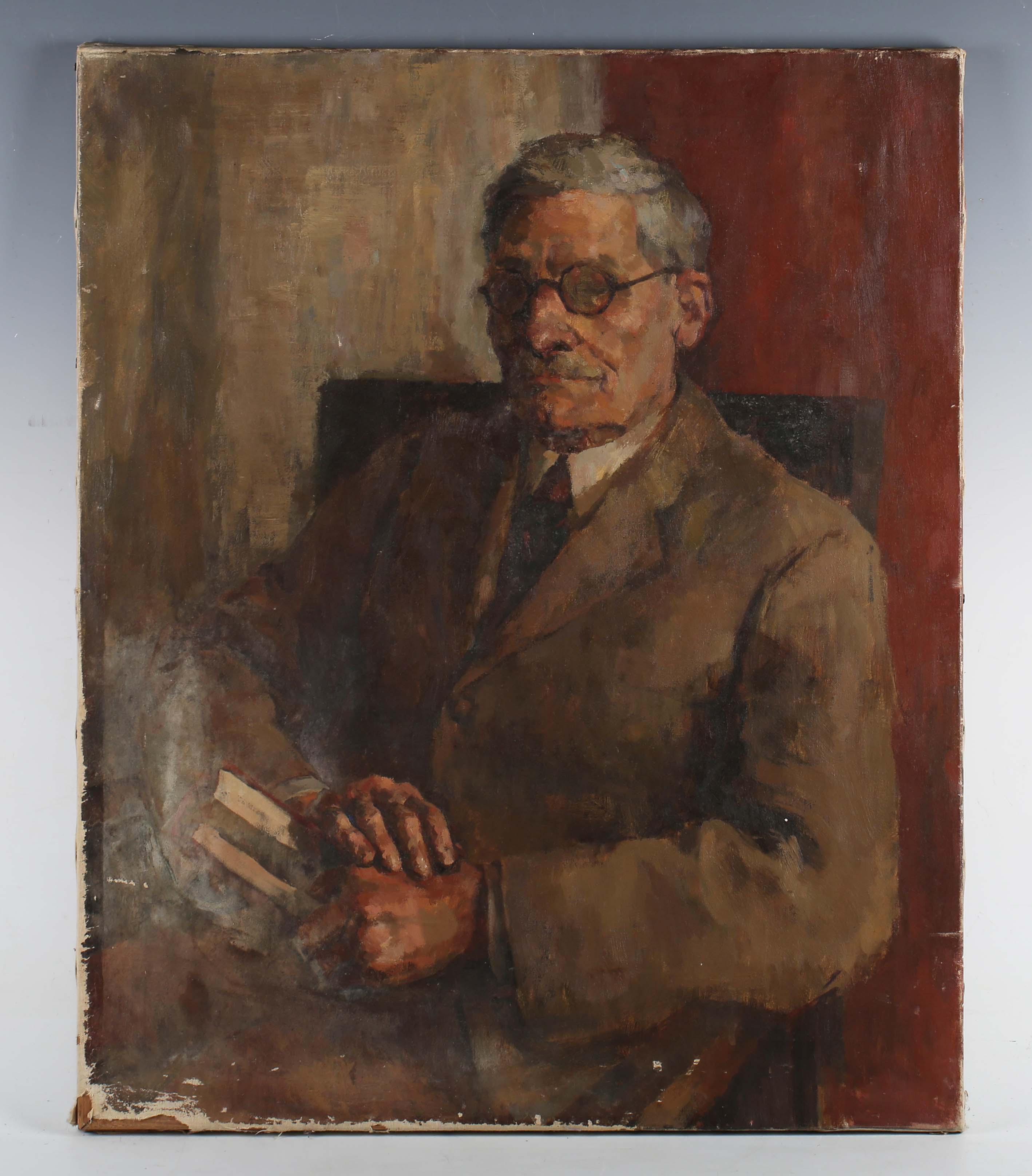 R.I.B. Walker (early 20th century) - Portrait of Major J.W.H. Thompson, oil on canvas, inscribed on label verso, 68cm x 55.5cm, unframed.