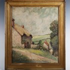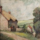 British School (early 20th century) - Thatched cottage in a landscape, possibly West Country, oil on canvas, 61.5cm x 51cm, within a gilt composition frame.