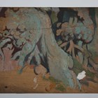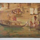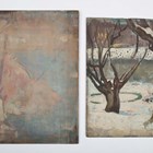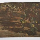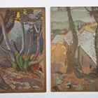 Mabel Alington Royds (British 1874-1941) - a group of eight works, including Middle Eastern figures and boats on a riverbank, tree studies and a landscape, oil on panel, one signed, various sizes, the largest 30cm x 38cm, all unframed (8).