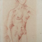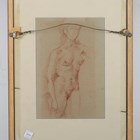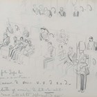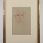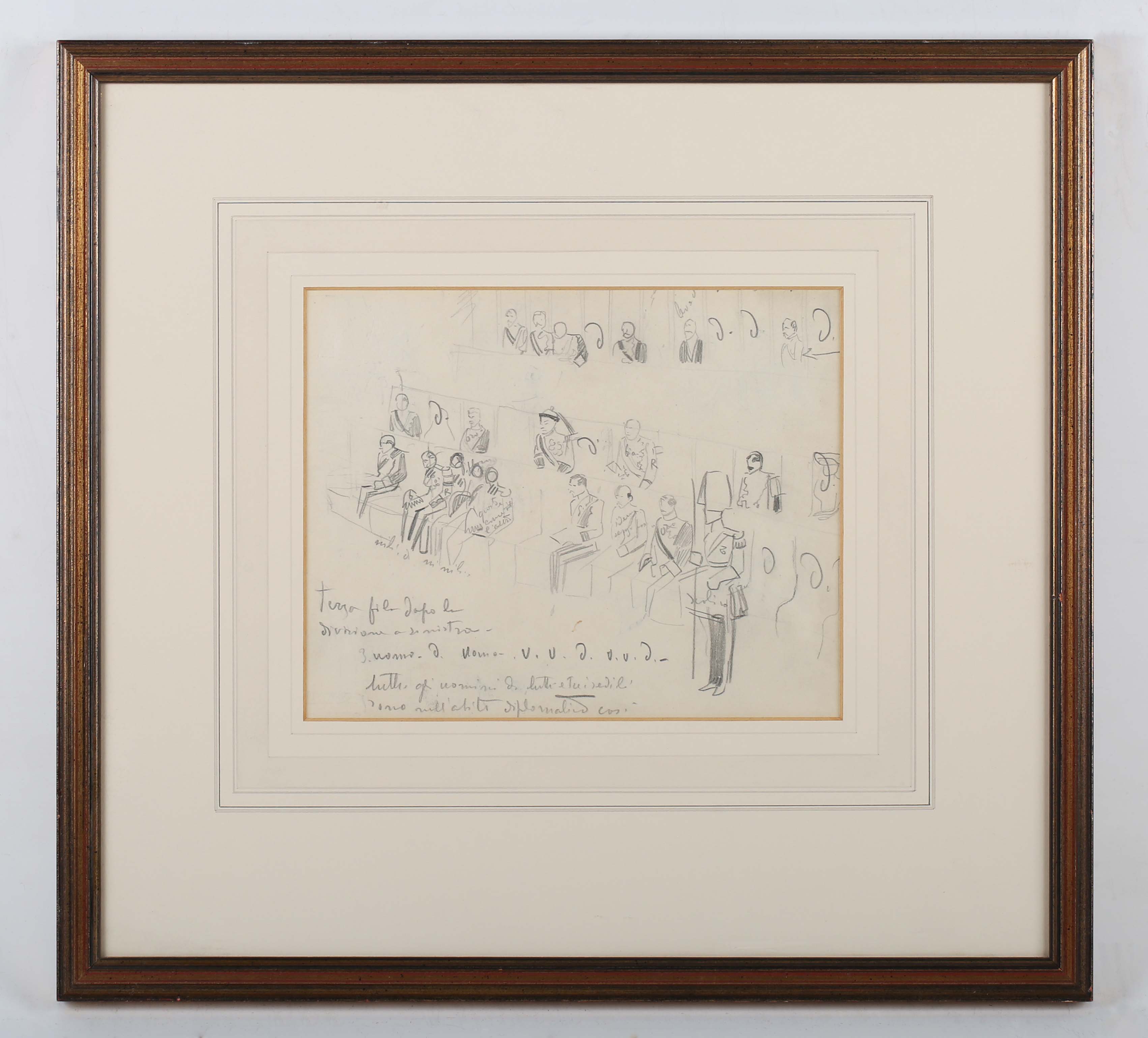 Fortunino Matania (Italian 1881-1963) - 'Diplomatic Box at Coronation of George V', 1910, pencil, indistinctly inscribed lower left, inscribed on label verso, 15cm x 18.5cm, together with a red chalk study of a woman by another hand, with a nude study verso, both within gilt frames (2).