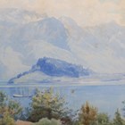 John Varley III (British 1850-1933) - Italianate lake scene, watercolour, signed lower right, 36cm x 51cm, within a painted gilt composition frame.