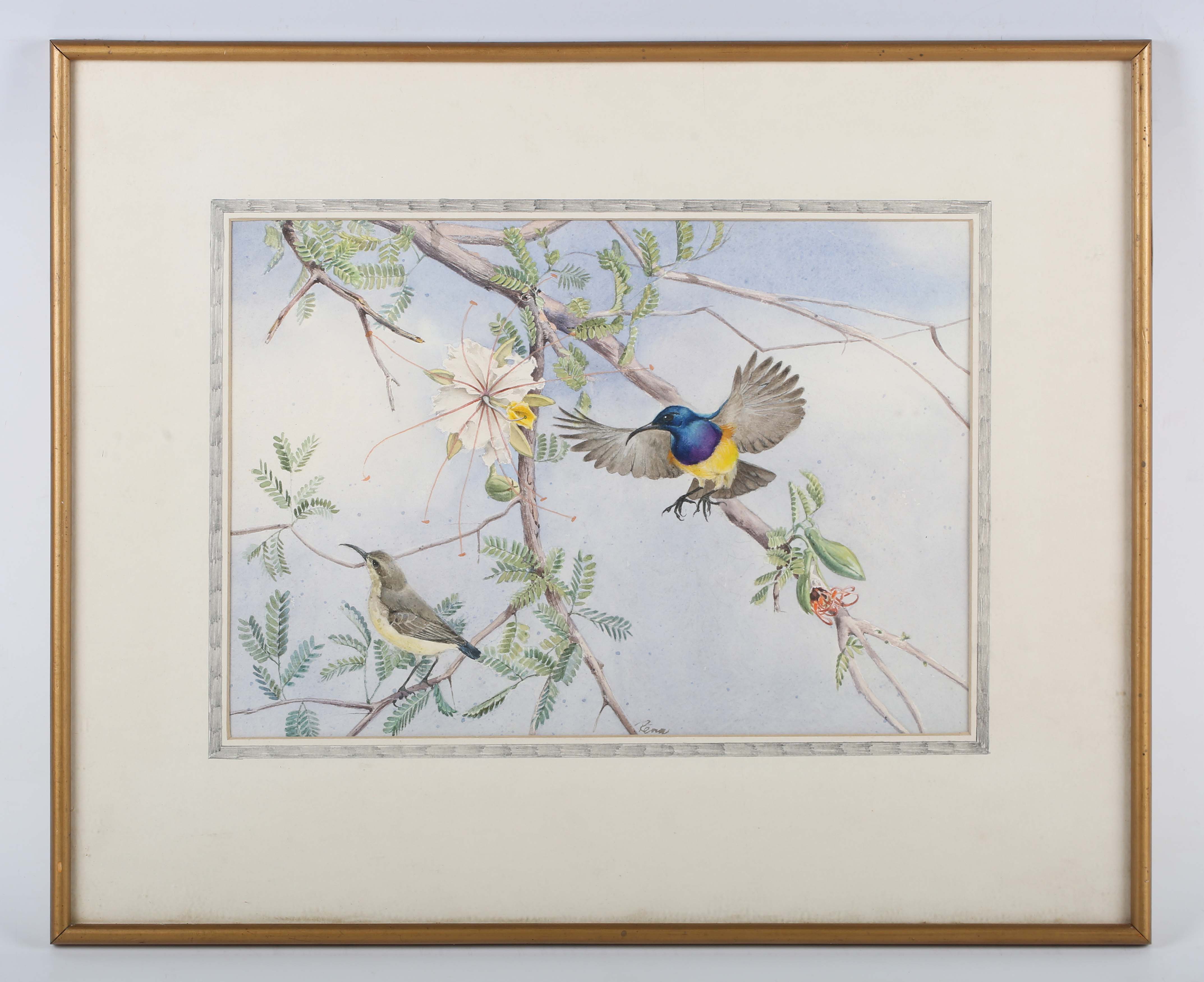 Rita Fennessy (20th century) - Palestine Sunbirds (Cinnyris osea), watercolour, signed lower centre, 24cm x 34cm, within a gilt frame.
