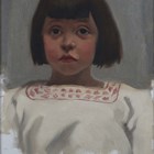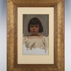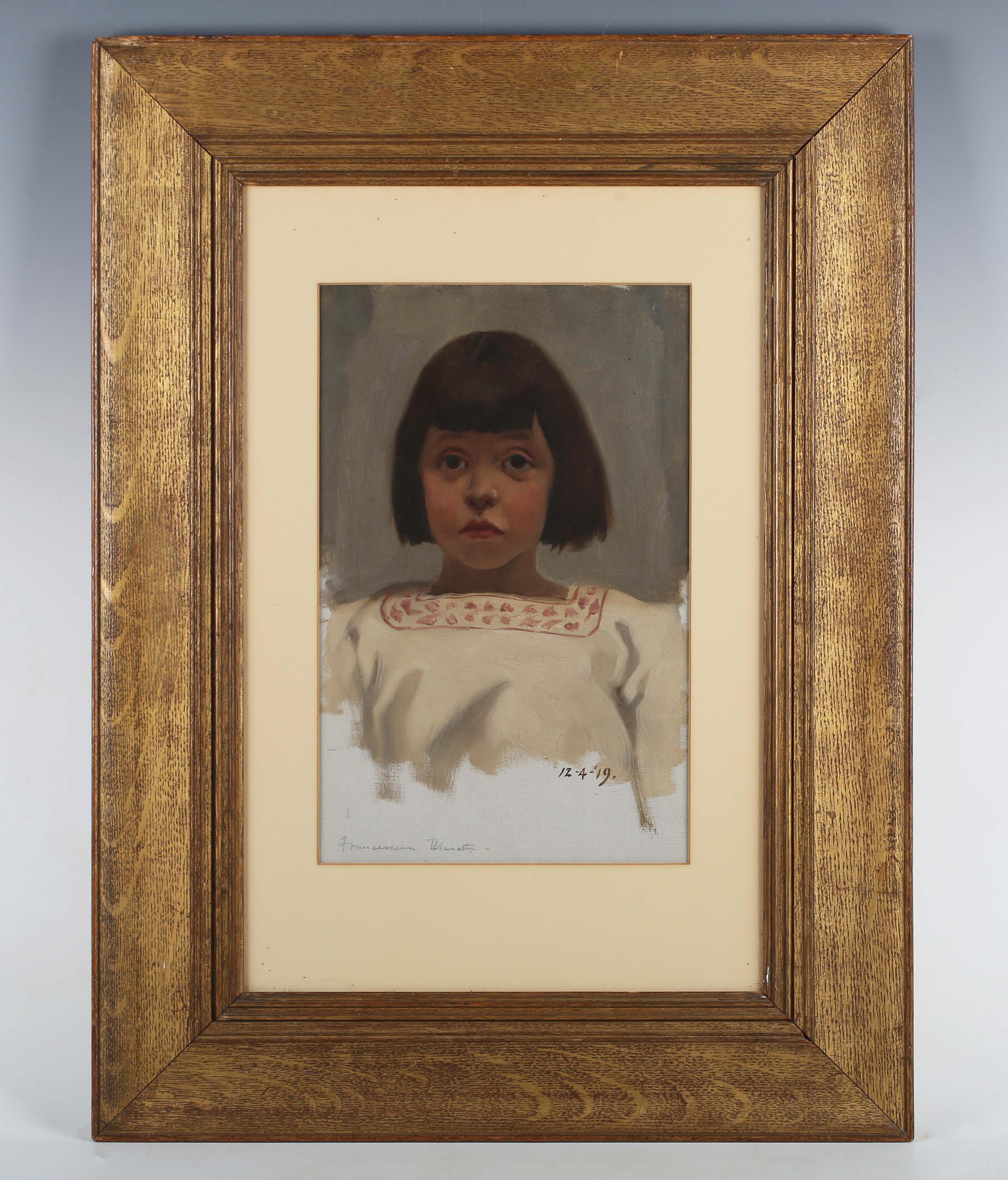 Haydn Reynolds Mackey (British 1883-1979) - 'Francescina Manetta': portrait of a girl, oil on canvas-board, titled lower left and dated 12.4.19 lower right, signed and inscribed verso, 35cm x 22.5cm, within a gilded oak frame of wide section.