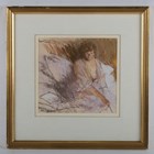 Bernard Dunstan (British 1920-2017) - ‘Woman in a Neglige’, pastel, signed with initials lower left, 20cm x 20cm, within a gilt frame. Provenance: New Grafton Gallery.