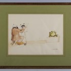 Graham Clark (British b.1941) - Artist and model, watercolour, pen and ink, signed lower right, 24cm x 32cm, within a gilt frame.