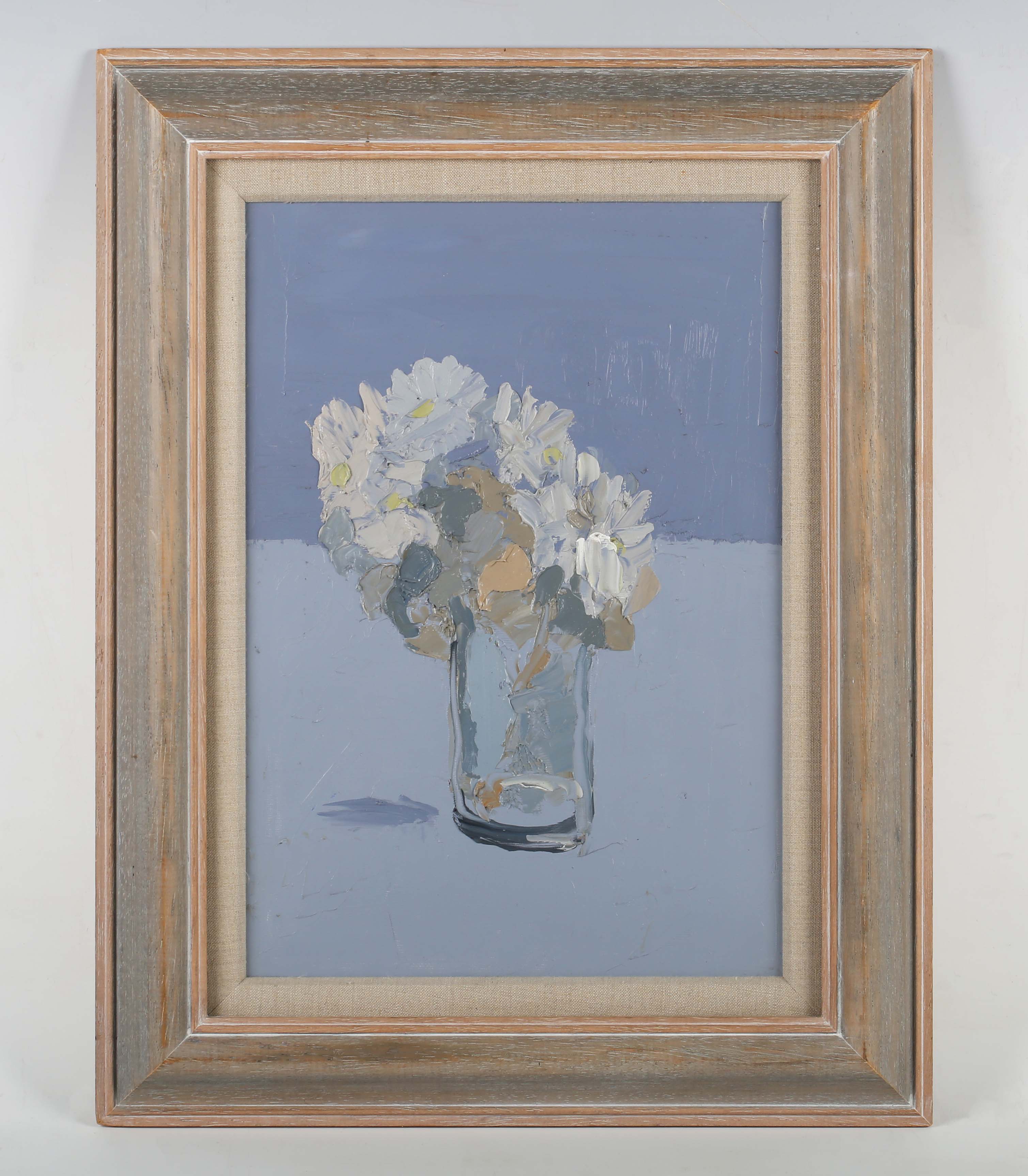 Bernard Myers (British 1925-2007) - 'White Daisies', oil on canvas-board, signed, titled and inscribed verso, 33cm x 23cm, within a stained wood frame.