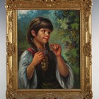 Giovanni Madonini (1915-1989) - Young girl picking grapes, oil on canvas, signed lower right, 49.5cm x 39.5cm, within a swept gilt composition frame.