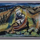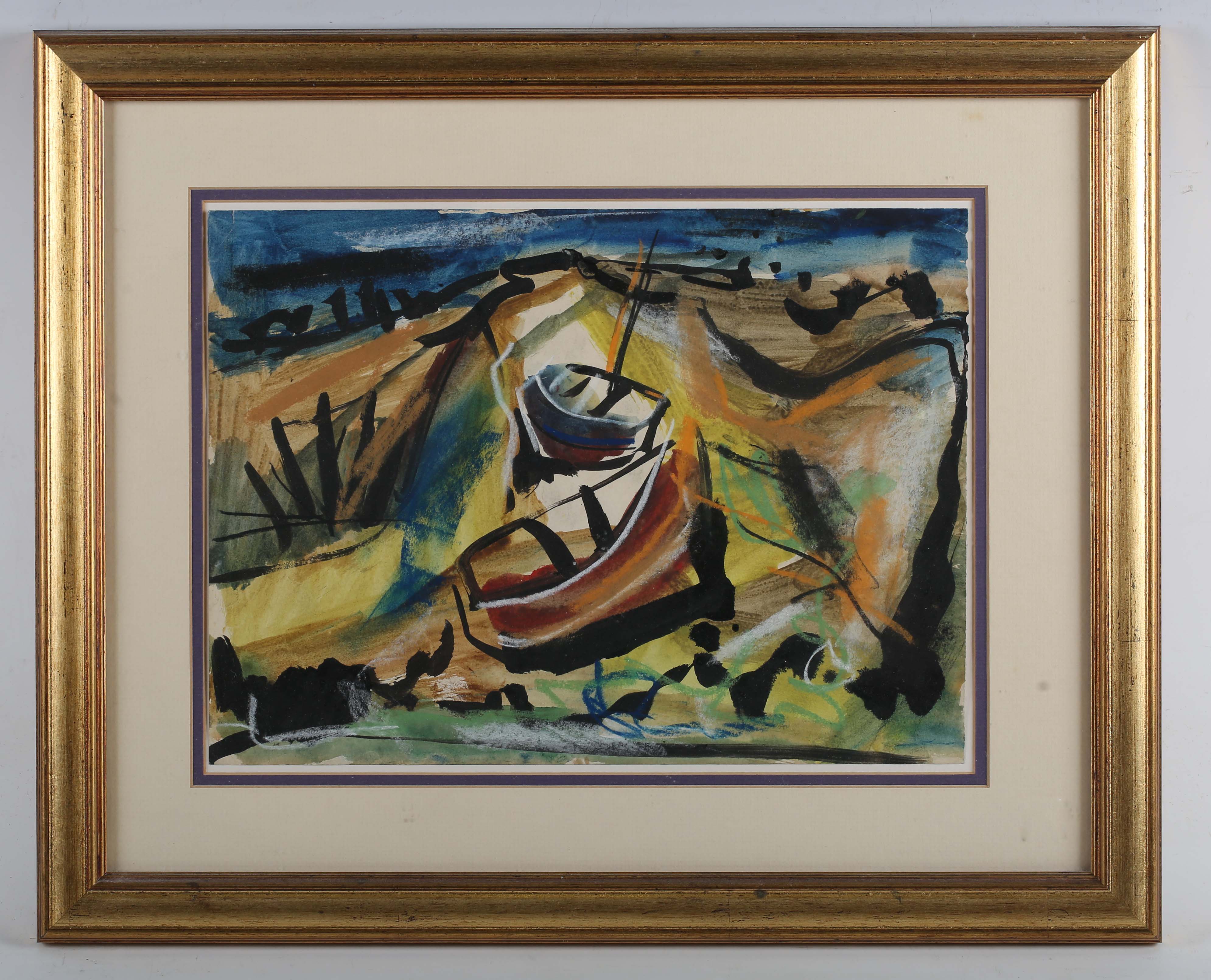David Smith (British 1920-1998) - 'Beachscape at Blakeney (Norfolk)', mixed media, inscribed on label verso, 25cm x 34cm, within a gilt frame.