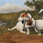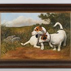 Richard Britton (British 1931-2024) - Jack Russell Terriers, oil on board, signed lower left, 30cm x 45cm, within a stained wood frame.