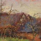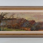 Terry Pilcher (British 20th century) - 'Beggearn Huish Farm, Somerset', oil on board, signed lower right, 21.5cm x 76.5cm, within a painted frame.