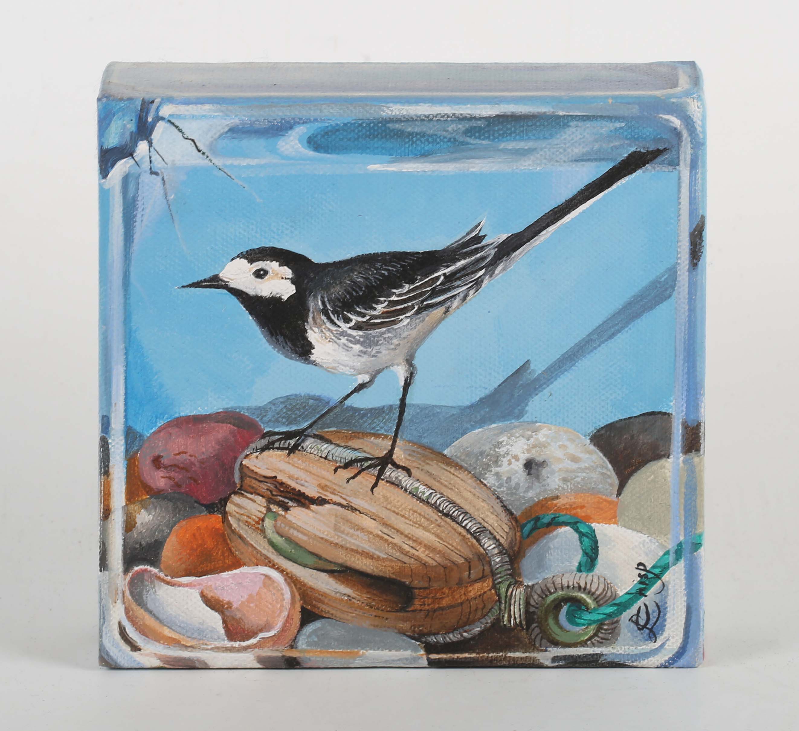 Lawrence Crisp (contemporary) - 'Chip off the Block', oil on canvas, signed lower right, inscribed on labels verso, 15cm x 15cm, unframed.