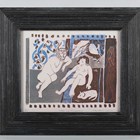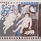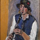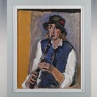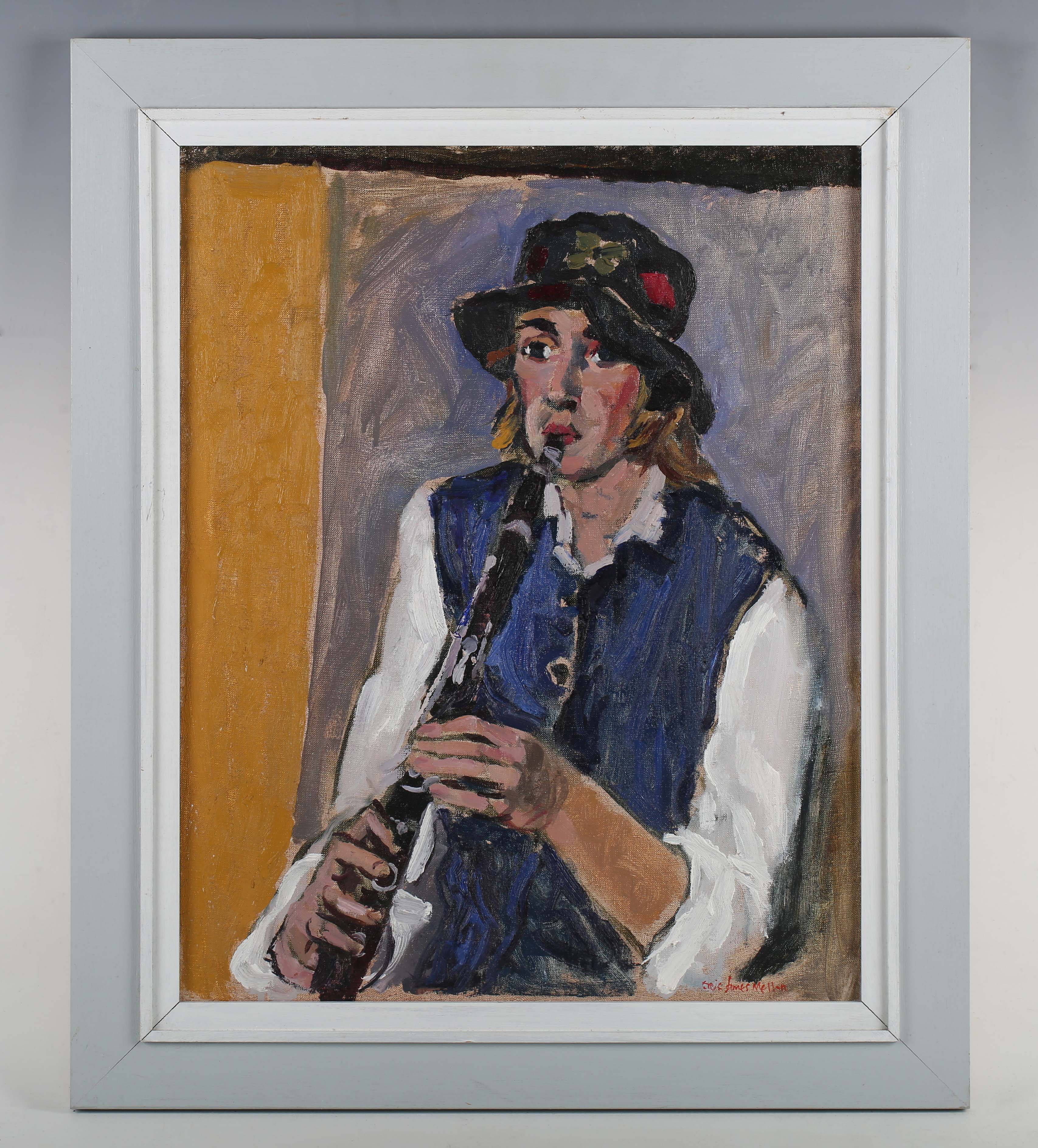 Eric James Mellon (British 1925-2014) - Portrait of a clarinettist, oil on canvas, signed lower right, inscribed and dated ’66 on stretcher, 51cm x 41cm, within a painted frame, together with a colour lithograph by the same hand, ‘Plato and Persephone’, signed, inscribed and numbered 2/25, 24cm x 29cm, within a fluted black stained frame (2).
