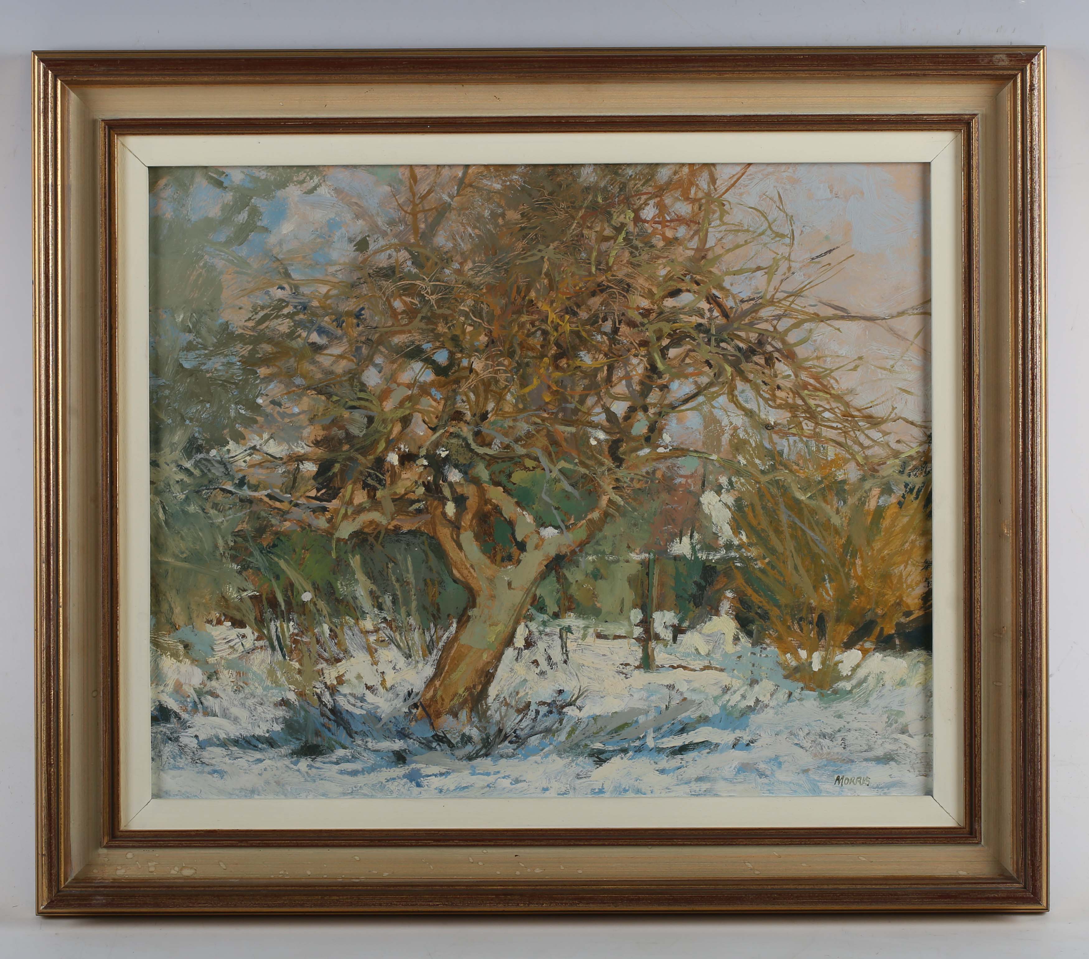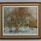 Anthony Morris (British b.1938) - ‘The Quince Tree’, oil on board, signed lower right, inscribed verso, 34cm x 41cm, within a gilt and painted composition frame.