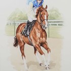 Caroline Jackman (b.1976) - ‘Mostarsil... winner at Goodwood 24th August 2003...', watercolour, signed and dated ’15 lower right, 41cm x 30cm. Note: Mostarsil was the winner of twelve races and was ridden in its early days by Ryan Moore, later champion jockey, son of the trainer Gary Moore. Some 20 years ago, this horse (by name), with Ryan Moore riding, featured in the TV series “Hustle” as the winning horse.