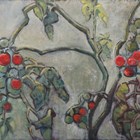 Gunnel Sterner (20th century) - Still life of tomatoes on the vine, oil on canvas, signed and dated ’83 lower right, 45cm x 55cm, within a wood frame.