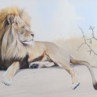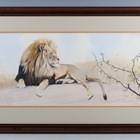 Allan Carter (British 1909-?) - Recumbent lion, watercolour and gouache, signed lower right, 32cm x 69cm, within a stained wood frame.