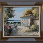 Jean-Pierre Bertaux-Marais (French b.1936) - 'Terrasse Fleurie', oil on canvas, signed lower right, signed and inscribed on stretcher, 66cm x 81cm, within a painted composition frame.