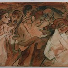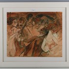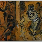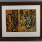 Doreen Heaton Potworowski (British b.1930) - Figure groups, two, mixed media, the larger 37cm x 46cm, one within a bronzed frame, the other within a white frame (2).