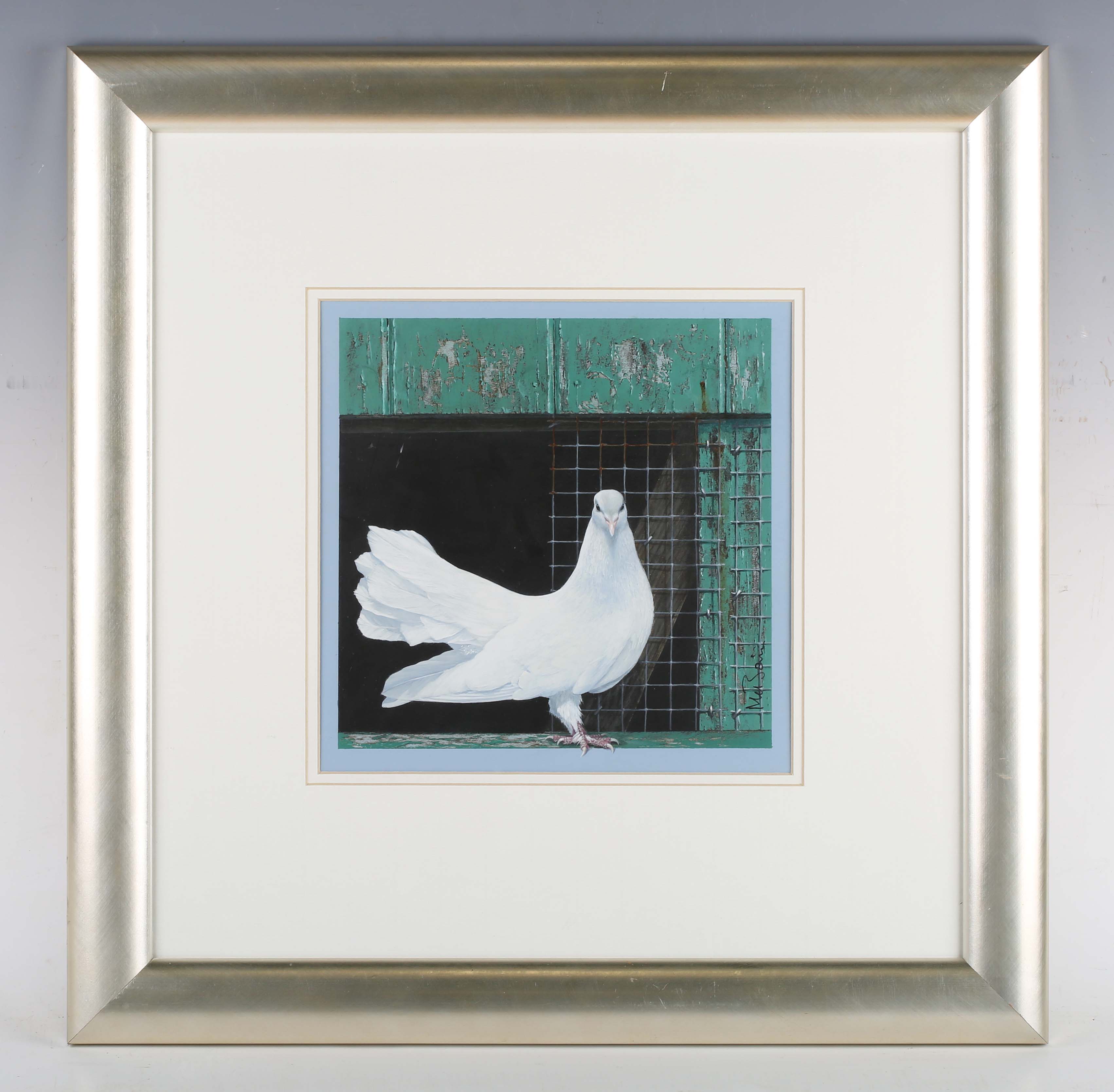 Clive McBain (British contemporary) - Dove, gouache, signed lower right, 25cm x 24.5cm, within a silvered frame.