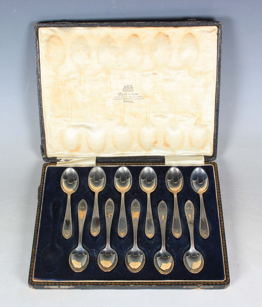 A set of eleven George V silver coffee spoons with beaded handles, Birmingham 1919 by Gorham Manufacturing Company, total weight 171.5g, cased.