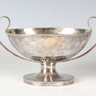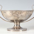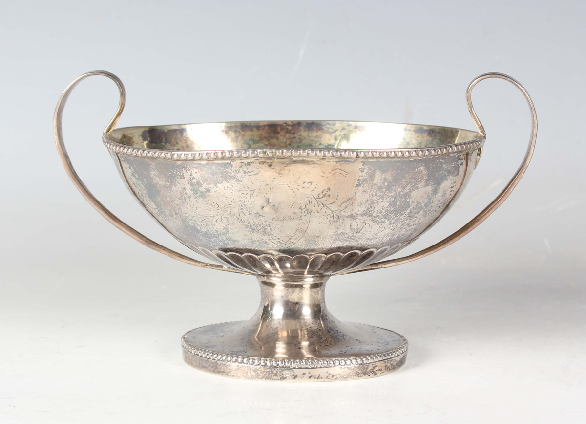 A late 18th century Danish silver two-handled sugar bowl of oval form, engraved with a floral garland, on an oval beaded foot, Copenhagen 1792, weight 153.2g, height 9.5cm.
