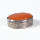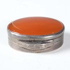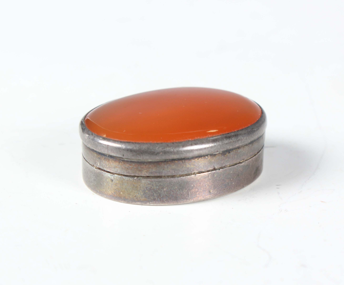 A George III silver and agate oval vinaigrette, the hinged lid revealing a gilt filigree hinged grille, Birmingham 1803 by Samuel Pemberton, weight 18.1g, length 3.2cm.