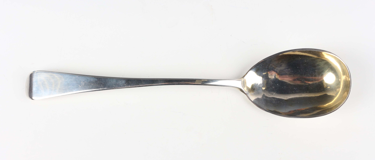 A George III silver Old English pattern basting spoon with fig shaped bowl, London 1809 by Solomon Hougham, weight 119.9g, length 28.5cm.