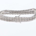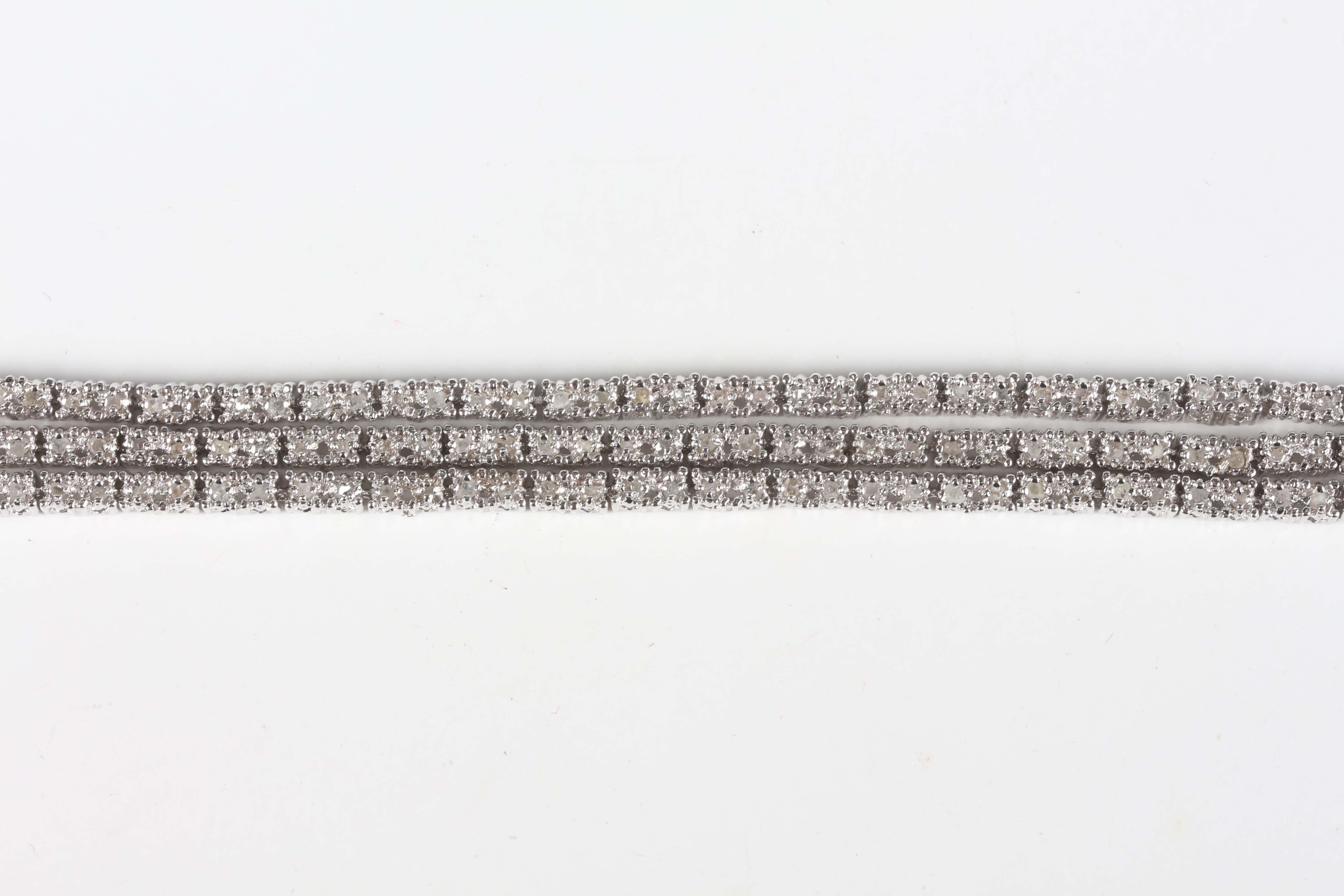 A silver and diamond bracelet in a three row design, on a snap clasp, detailed ‘925’, weight 21.5g, length 18.5cm.