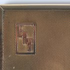 An Art Deco 18ct gold rectangular cigarette case with engine turned decoration, the sliding hinged lid applied with initials, London 1931 by S.J. Rose & Son, weight 187g, length 11.3cm.