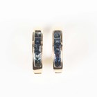 A pair of 14ct gold and sapphire earrings, each in a hoop shaped design, mounted with a row of five square cut sapphires, with post fittings, total weight 5.5g, length 1.9cm.