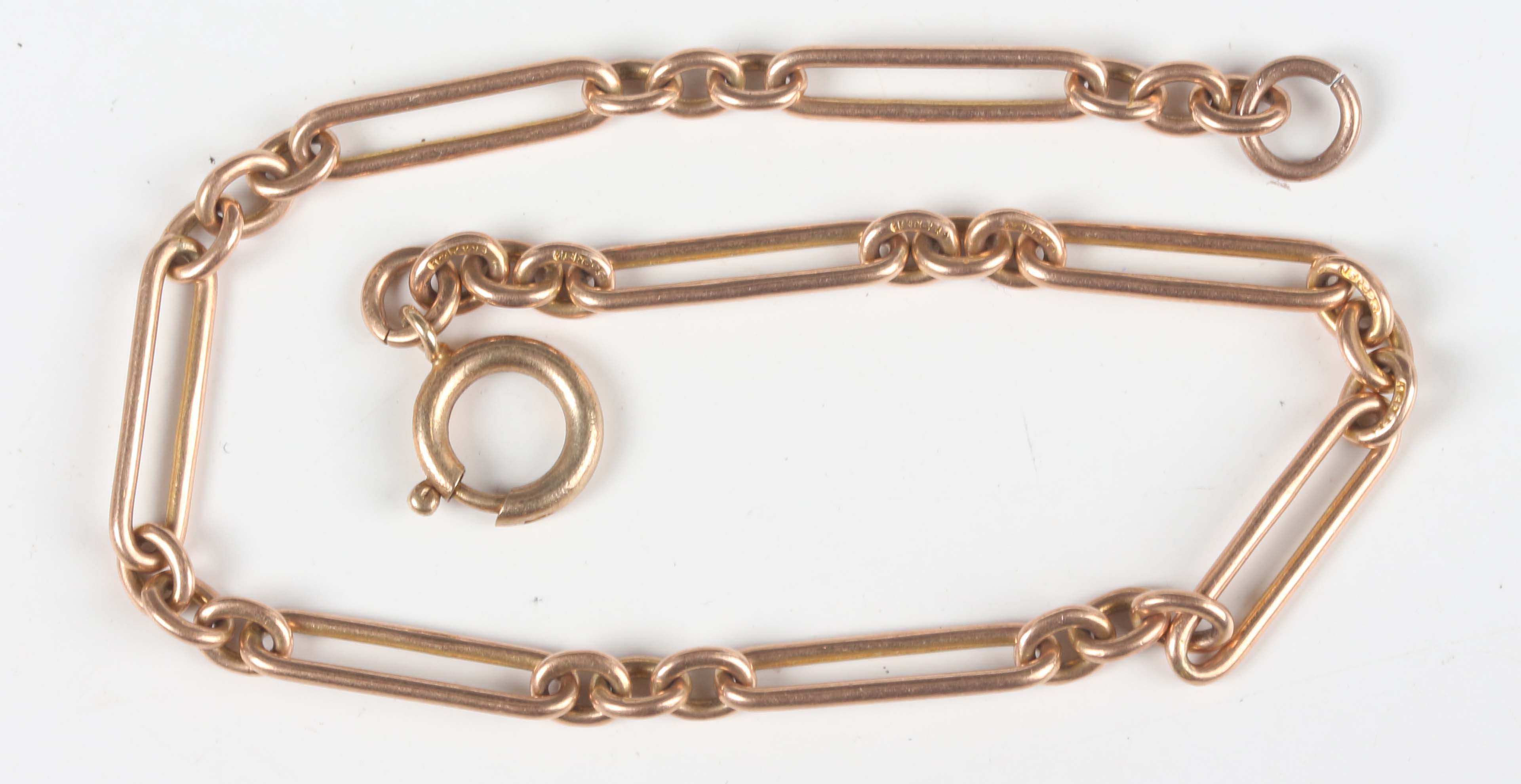 A 15ct gold bar and oval link bracelet on a boltring clasp, weight 7.4g, length 20.5cm.