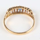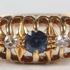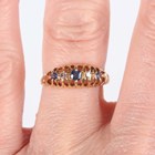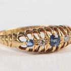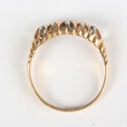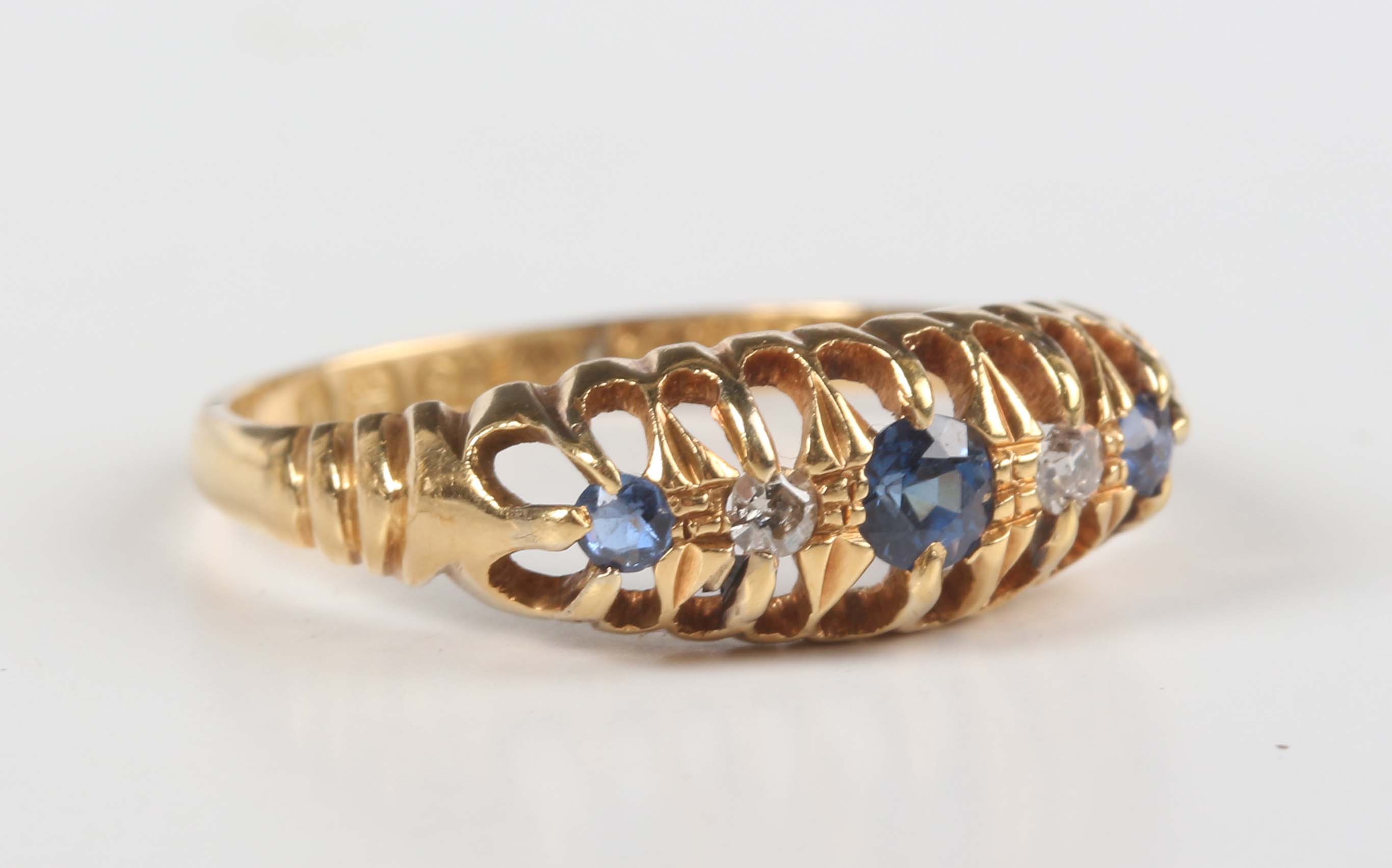 An 18ct gold, sapphire and diamond five stone ring, mounted with three sapphires alternating with two diamonds, Birmingham 1915, weight 2.2g, ring size approx N.