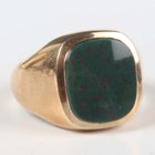 A 9ct gold and bloodstone signet ring, London 1967, weight 6.1g, ring size approx U.