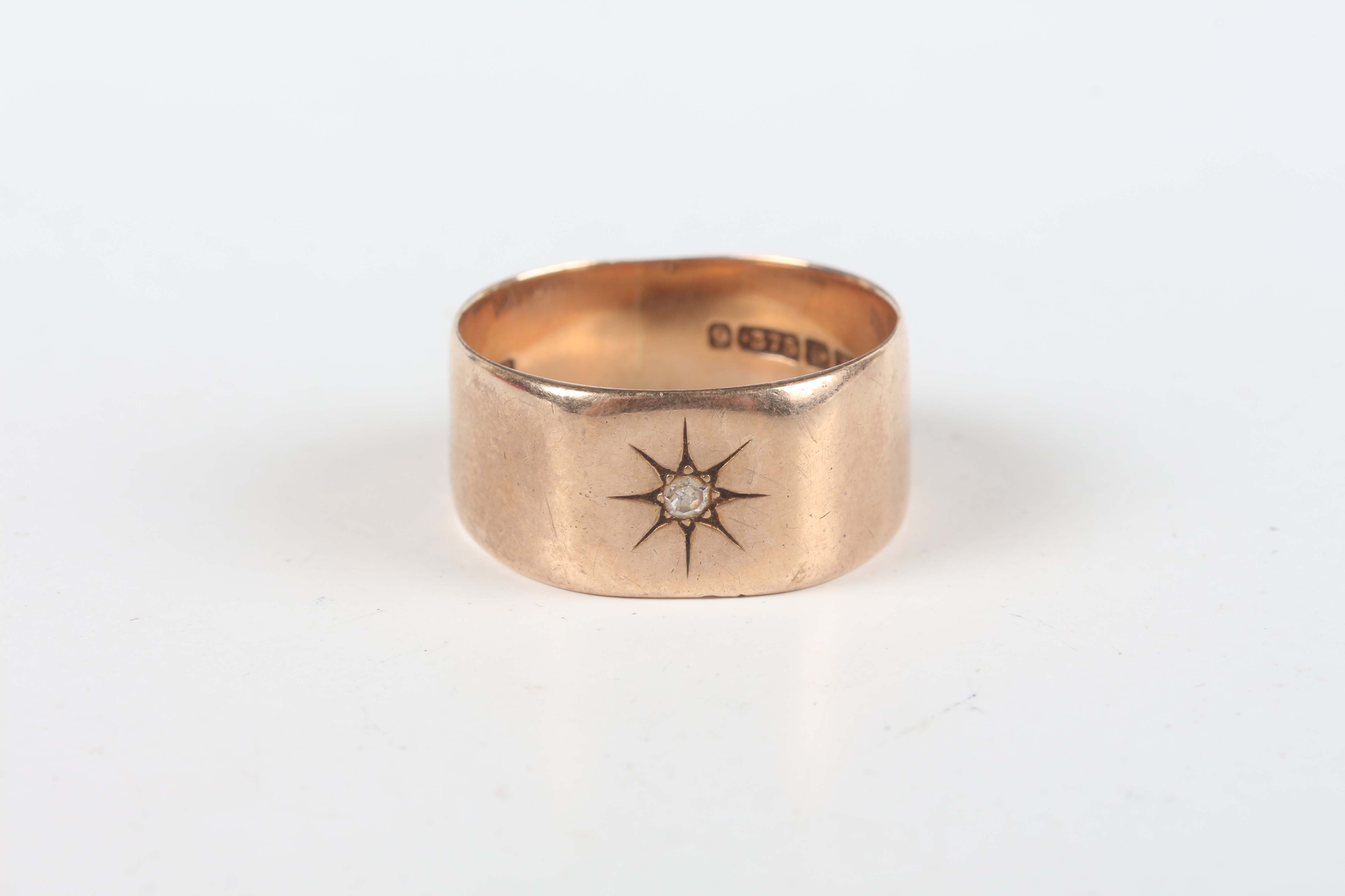 A 9ct gold and diamond set signet ring, star set with a circular cut diamond, weight 5.6g, ring size approx T.