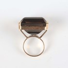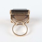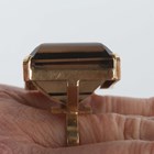 A 9ct gold ring, claw set with a large cut cornered square smoky quartz, detailed '24', weight 21.5g, ring size approx M1/2, smoky quartz dimensions approx 25mm x 25mm.