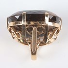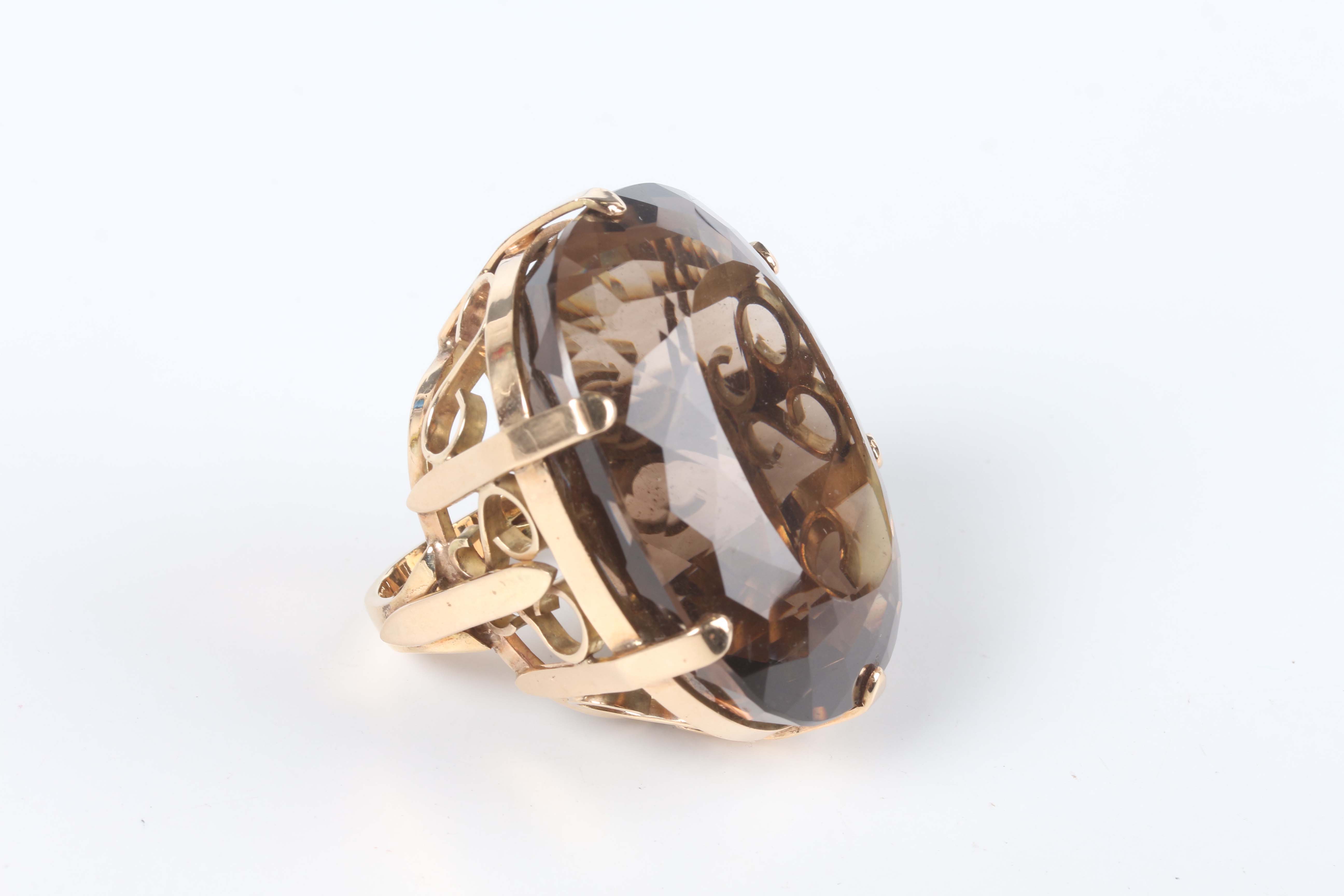 A 9ct gold ring, claw set with a large cushion cut smoky quartz, weight 107.8g, ring size approx P, smoky quartz dimensions approx 50mm x 40mm.