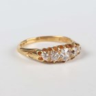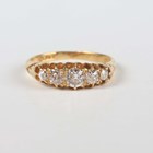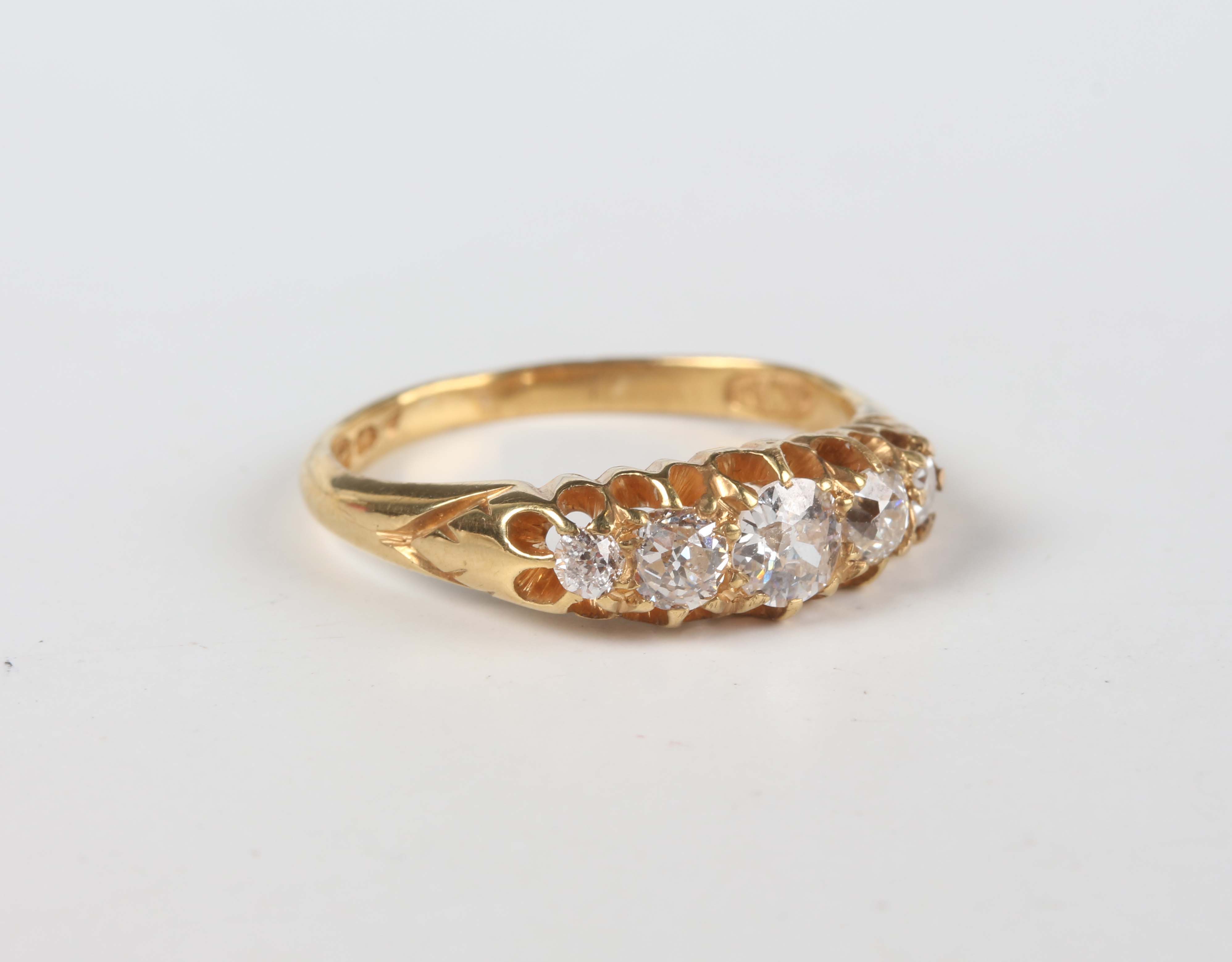 An 18ct gold and diamond five stone ring, claw set with a row of graduated circular cut diamonds, weight 3.6g, ring size approx M.